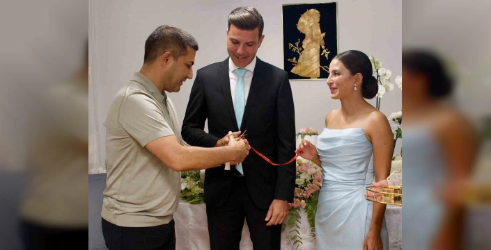 Kuşadası Belediye Başkanı Günel, hakem Özyemişçioğlu'nun nişanında yüzükleri taktı