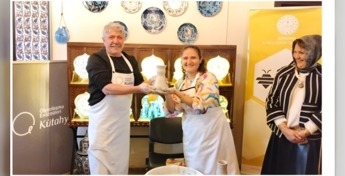 Kütahya'da düzenlenen etkinlikte öğretmenler, Devlet Sanatçısı Ali Kaya rehberliğinde çinicilik sanatını öğrenip uygulamalı atölyede eserler üretti.