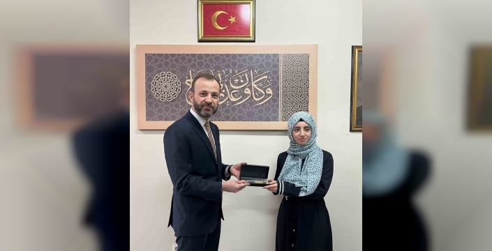 Kütahya Akşemsettin Kız Anadolu İmam Hatip Lisesi öğrencisi Hayrunnisa Cengiz, ulusal kitap okuma yarışmasında Türkiye birincisi olarak milletvekili tarafından ödüllendirildi.