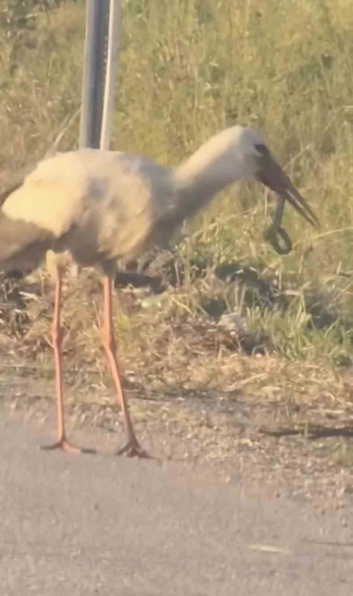 Bursada hava sıcaklığı sebebiyle ortaya çıkan yılanlar, vatandaşları tedirgin etti. Kimi itfaiye ekiplerini çağırıp yakalanmasını beklerken, kimi ise arabasından bile inmeden yoluna devam etti. Leylek köyü Karaağaçta bir leylek gördüğü yılanı tek hamle ile midesine indirdi. O anlar bir vatandaş tarafından saniye saniye kayda alındı.