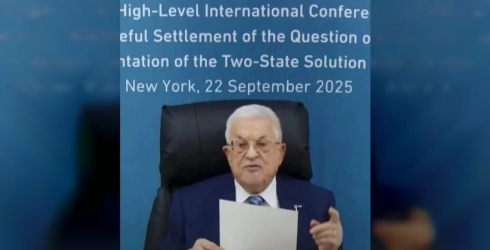 Filistin Devlet Başkanı Mahmud Abbas, BM Genel Merkezi’nde düzenlenen "Filistin Meselesine Çözüm Bulunması ve İki Devletli Çözümün Hayata Geçirilmesi Konulu Yüksek Düzeyli Uluslararası Konferansı"na ABD’nin vizesini iptal etmesi nedeniyle video mesaj yoluyla katıldı.
