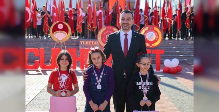 Ardından Cumhuriyet Meydanında resmi törene geçildi. Saygı duruşu ve İstiklal Marşının okunmasıyla başlayan programda, günün anlam ve önemini belirten konuşmalar yapıldı. Törende öğrenciler tarafından okunan şiirler ve sergilenen halk oyunları ile spor gösterileri, katılımcılardan tam not aldı. Ayrıca, Cumhuriyet Bayramı vesilesiyle liseler arası düzenlenen şiir, resim ve kompozisyon yarışmalarında dereceye giren öğrencilere ödülleri verildi.