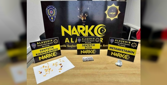 Narkotik Suçlarla Mücadele Şube Müdürlüğü Alaşehir Büro Amirliği ekipleri, sokak çalışmaları sırasında Barış Mahallesi'nde bir ikamete yönelik başarılı bir operasyon düzenledi. Operasyon kapsamında N.E. (34) isimli şüpheli şahıs gözaltına alındı. Yapılan aramalarda şüphelinin üzerinde ve ikamette toplam 14 adet sentetik ecza hapı, 0.98 gram metamfetamin ve 51 parça A4/peçete sentetik kannabinoid maddesi ele geçirildi.