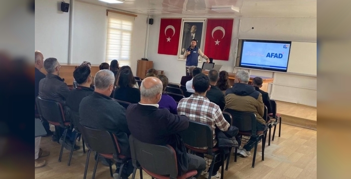 Manisa'da kamu çalışanları ve muhtarlar için düzenlenen afet bilinci eğitiminde, katılımcılara afet öncesi ve sonrası yapılması gerekenler anlatıldı.