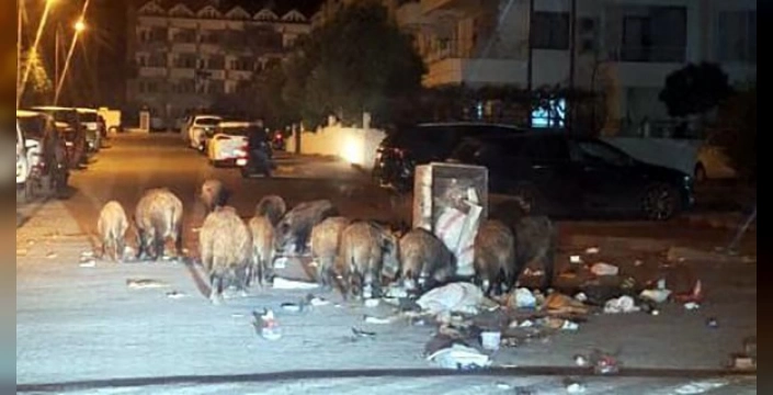 Muğla'nın Marmaris ilçesinde, belediyenin yetersiz çöp toplama hizmetleri nedeniyle artan çöp sorunu, domuz sürülerinin ilçe merkezini istila etmesine yol açtı ve vatandaşlar tepkilerini dile getirdi.