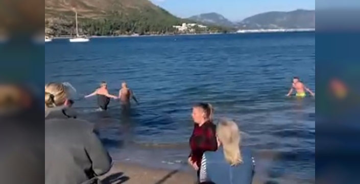 Marmaris'te yaşayan yabancı uyruklu vatandaşlar, 2026 yılını denize girerek karşıladı. Hava sıcaklığının 6 derece olduğu günde, bu geleneksel kutlamayı aileleriyle birlikte gerçekleştirdiler.