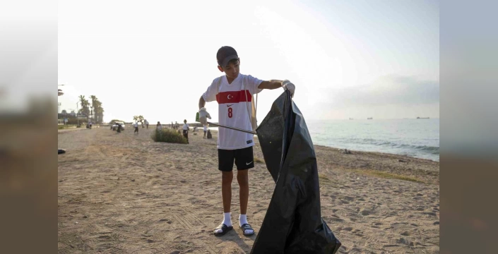 Mersin'de genç fenomen Aras Kayretli'nin çevre kampanyası: Kumsalda atık toplama etkinliği