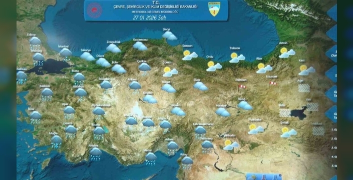 Salı günü Marmara, Ege, Akdeniz ve İç Anadolu'nun güney ve batısında yağmur ve sağanak görülecek. Kıyı Ege ve Akdeniz bölgelerinde yağışlar kuvvetli olacak, Antalya çevrelerinde ise şiddetli hatta yer yer aşırı yağış bekleniyor. Toroslar'da 1500 metre ve üzeri yüksekliklerde yoğun kar yağışı tahmin ediliyor. Çarşamba günü yağışlı sistem doğu kesimlere kadar ilerleyecek.