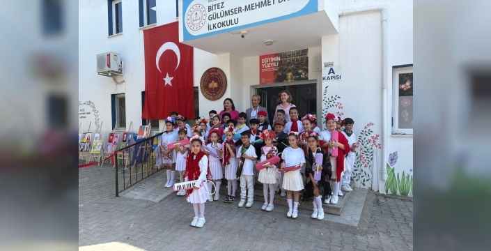 Muğla’nın Bodrum ilçesine bağlı Bitez Mahallesi’nde bulunan Gülümser Mehmet Danacı İlkokulu öğrencileri, yıl boyunca hazırladıkları eserleri sanatseverlerle buluşturdu.