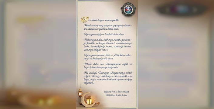 Başkan Kalın, Ramazan'ın feyz ve bereketinin daimi olmasını dileyerek, ruhumuza asalet, kalbimize inşirah, gönlümüze ferahlık ve aklımıza istikamet verilmesini temenni etti. Ayrıca, ülkemiz, milletimiz ve tüm insanlık için hayır, huzur ve bereket kapılarının açılmasını niyaz etti.