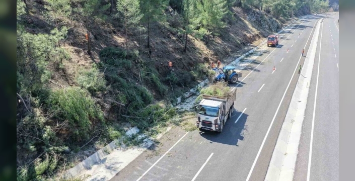 Orman yangınlarıyla mücadelede "önleyici faaliyetler" kapsamında Muğla Orman Bölge Müdürlüğü'nün koordinasyonunda devam eden çalışmalar, muhtemel bir yangının karayolundan ormanlık alanlara sıçramasını engellemeyi hedefliyor. Bu önemli güzergahlardan biri olan Muğla-Denizli karayolu, yangın riskini azaltmak amacıyla özel olarak ele alınıyor.
