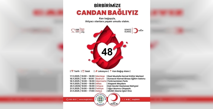 Muğla Büyükşehir Belediyesi, 17-21 Kasım'da Kızılay'a destek için il genelinde kapsamlı kan bağışı kampanyası düzenliyor. 7 ilçede kurulacak noktalarda belediye çalışanları ve halkın katılımı hedefleniyor.