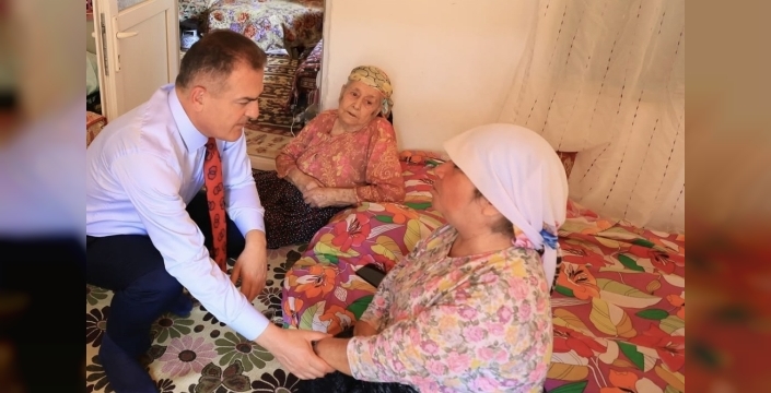 Muğla Valisi Dr. İdris Akbıyık ve Milas Kaymakamı Mustafa Ünver Böke, Milas ilçesine bağlı Kapıkırı Mahallesi'nde ikamet eden bedensel engelli Fatma Burnak ve annesi Behiye Burnak'ı evlerinde ziyaret etti.