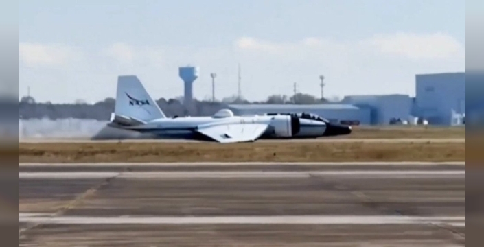 NASA uçağı iniş takımları açılmayınca gövde üzerine indi, pilotlar şans eseri kurtuldu