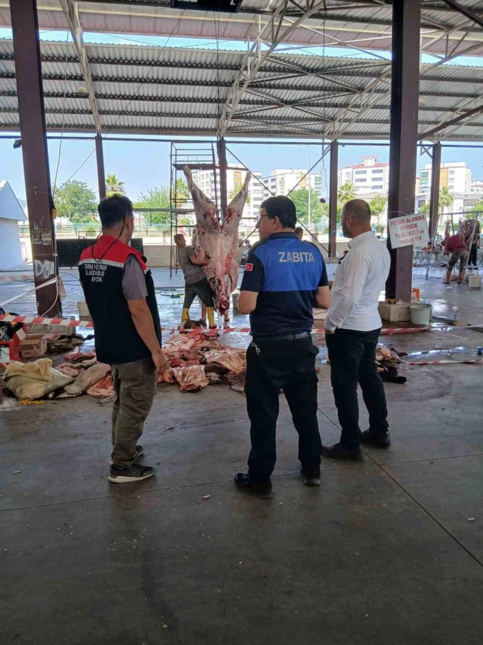 Nazilli İlçe Tarım ve Orman Müdürlüğü ekipleri Kurban Bayramı süresince ilçe genelinde kurbanlık hayvan kesim yerlerinde denetimlerini aralıksız sürdürdü.