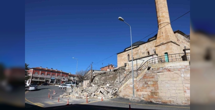 Nevşehir'de tarihi caminin istinat duvarı çöktü, vatandaş son anda kurtuldu