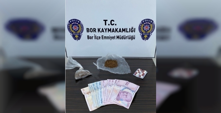 Niğde'nin Bor ilçesinde düzenlenen uyuşturucu operasyonunda iki şüpheli yakalandı, bir şahıs tutuklandı ve adli işlemler sürüyor.