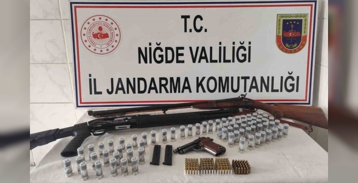 Niğde'de yasa dışı silahlanmaya yönelik operasyonda bir evde ruhsatsız silahlar ve çok sayıda fişek ele geçirildi, 1 kişi gözaltına alındı.