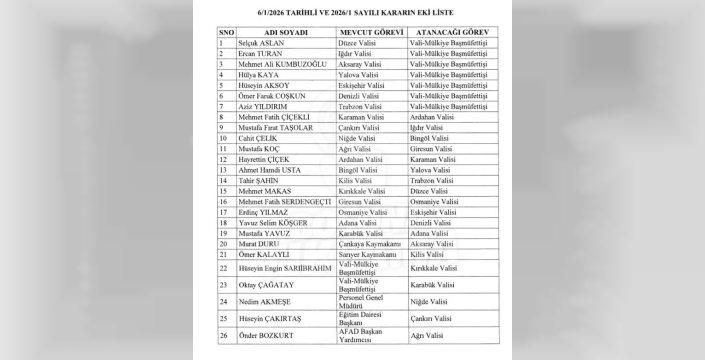 Cumhurbaşkanı Recep Tayyip Erdoğan'ın imzasıyla Resmi Gazete'de yayımlanan Valiler Kararnamesi, Niğde'de önemli bir değişikliğe yol açtı. 7 Ocak 2026 tarihli kararnameyle Niğde'nin yeni valisi Nedim Akmeşe oldu. Daha önceki Niğde Valisi Cahit Çelik ise Bingöl Valiliği'ne atandı.
