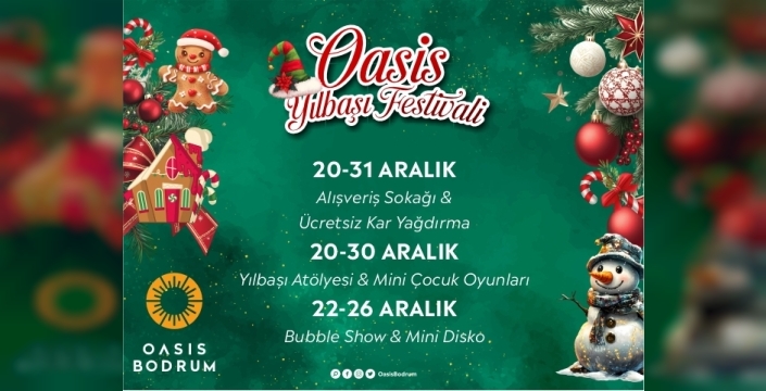 Oasis Bodrum, 20 Aralık'tan itibaren yılbaşı ruhunu yaşatacak etkinliklere ev sahipliği yapıyor. Alışveriş sokağı, atölyeler, bubble show ve mini disko gibi pek çok aktivite ziyaretçileri bekliyor.