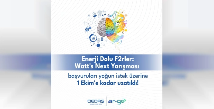 OEDAŞ'ın 'Enerji Dolu F2rler: Watt’s Next' yarışmasının başvuru tarihi, gelen yoğun talepler üzerine 1 Ekim 2025'e kadar uzatıldı. Enerji sektörünün geleceğine yön verecek yenilikçi fikirler bekleniyor.
