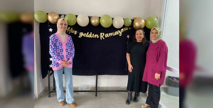 Okul salonunda özenle hazırlanan ve üzerinde "Hoş Geldin Ramazan" yazan pano, rengarenk balonlarla süslendi. Öğrenciler ve öğretmenler, bu özel Ramazan Köşesi önünde anılarını ölümsüzleştirmek için hatıra fotoğrafı çektirdiler.