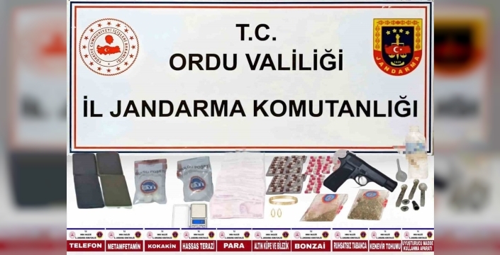 Ordu İl Jandarma Komutanlığı'na bağlı ekipler, uyuşturucu madde ile mücadele kapsamında, Narkotik Suçlarla Mücadele Şube Müdürlüğü ve İstihbarat Şube Müdürlüğü ile Ünye ve Fatsa İlçe Jandarma Komutanlıkları'nın koordinasyonunda operasyon düzenledi. Ekipler, Ünye ilçesinde M.C.K. (29), H.T. (46) ve S.S.K. (23) isimli şahısların üzerinde ve aracında yaptıkları aramalarda toplam 756 adet sentetik ecza, 1 gram metamfetamin, 1 gram bonzai ham maddesi, bir ruhsatsız tabanca ve çeşitli uyuşturucu kullanma aparatları ele geçirdi.