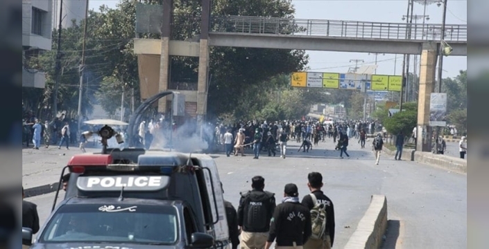 Göstericiler, taş atarak binaya girmeye çalıştığında, polis müdahale etti. Kolluk kuvvetleri, kalabalığı dağıtmak ve kontrolü sağlamak amacıyla göz yaşartıcı gaz ve cop kullandı. Dawn gazetesine konuşan yetkililer, göstericilerle polis arasında çıkan çatışmada ilk belirlemelere göre 9 kişinin yaşamını yitirdiğini açıkladı. Cenazelerin hastaneye nakledildiği bildirildi.