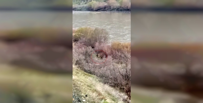 Elazığ'ın Palu ilçesinde, Murat Nehri kenarında balık tutmaya giden bir balıkçı, doğanın sürpriziyle karşı karşıya kaldı. Beyhan Kasabası yakınlarındaki nehir kıyısında, anne ayı ve yavrusunu aniden gören balıkçı, büyük bir şaşkınlık yaşadı. Bu nadir anı kaçırmak istemeyen balıkçı, hemen cep telefonu kamerasıyla ayıları görüntülemeyi başardı.