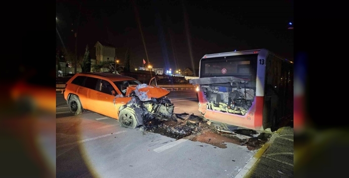 Park halindeki otobüse çarpan otomobilin sürücüsü yaralandı