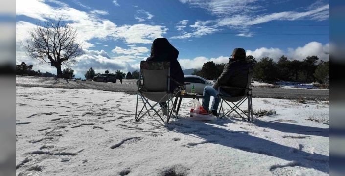 Karla kaplı ağaç dallarının eşlik ettiği Paşa Yaylası'nda, vatandaşlar ateş yakarak sucuk ekmek keyfi yaptı. Gün boyu süren kar eğlenceleri, bölgeye renkli görüntüler kattı.