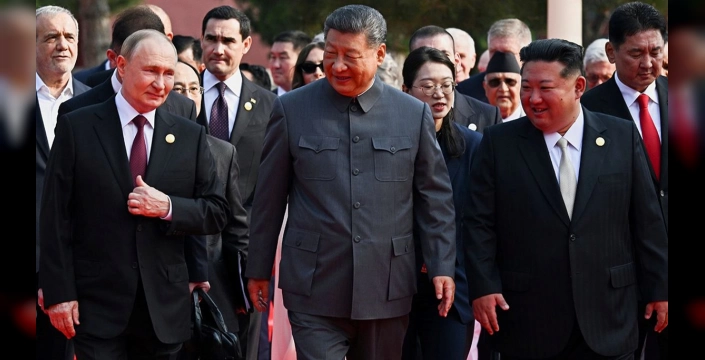 26 ülkenin liderinin katıldığı törende Çin Devlet Başkanı Şi Cinping, Rusya Devlet Başkanı Vladimir Putin ve Kuzey Kore Devlet Başkanı Kim Jong Un ile birlikte görüntülendi. Üç liderin birlikte ilk kez bu şekilde görüntülenmeleri, ABD'ye bir mesaj olarak yorumlandı.