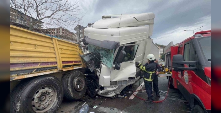 Rize'de park halindeki tıra başka bir tır çarptı: 1'i ağır 4 yaralı