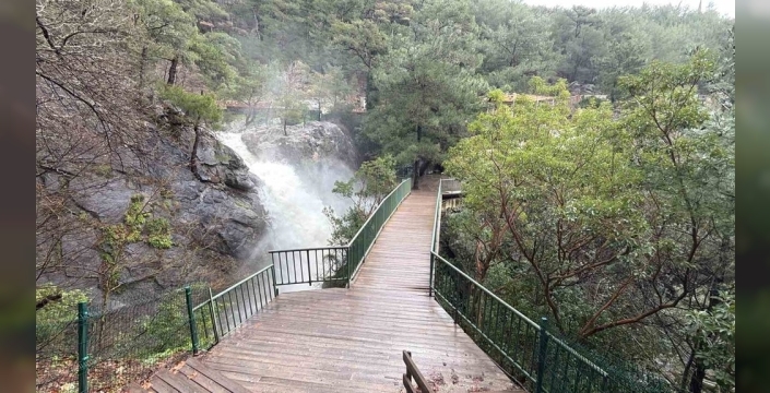 Kazdağları'nda iki gündür devam eden sağanak yağışlar, bölgedeki derelerin debisini yer yer dört katına çıkardı. Bu durum, Balıkesir'in Edremit ilçesi sınırları içinde yer alan Kazdağları'nın en görkemli şelalelerinden biri olan Sütüven Şelalesi'ni son yılların en yüksek su seviyesine taşıdı.
