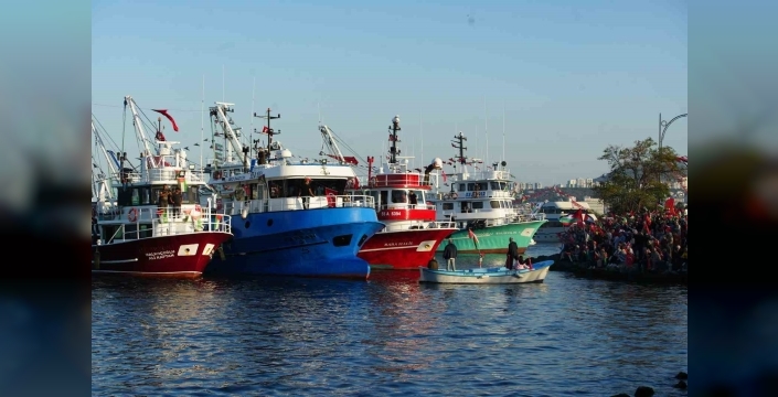 Samsun Limanı'nda, Filistin halkına destek amacıyla çok sayıda gemi ve tekne bir araya gelerek denizde kortej oluşturdu. Etkinliğe karadan da yüzlerce vatandaş katılım göstererek destek verdi.