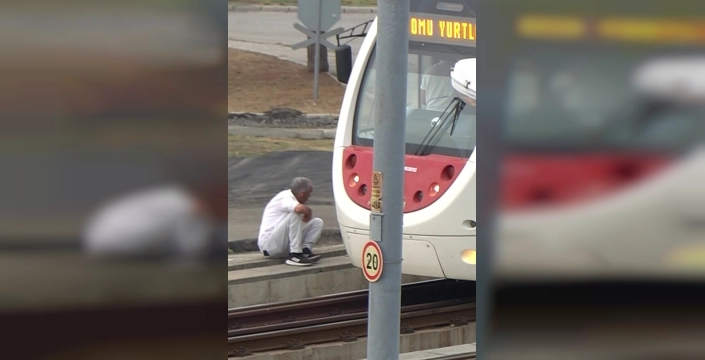 Samsun'da tramvay raylarında müzik dinleyen kişi, vatman tarafından kurtarıldı