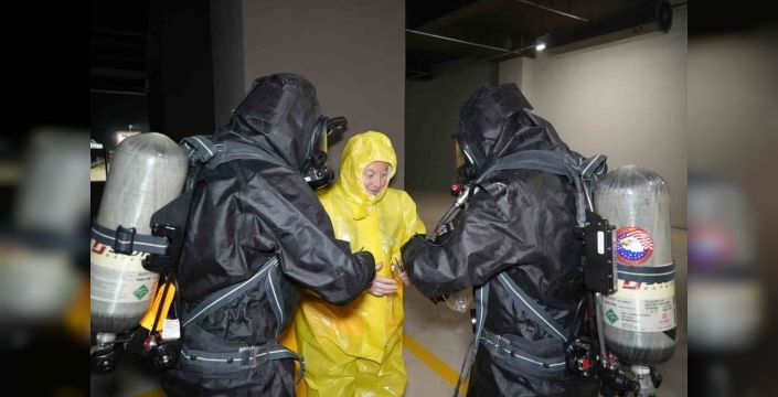 Samsun Şehir Hastanesi'nde düzenlenen kimyasal, biyolojik, radyolojik ve nükleer (KBRN) tatbikatında, patlama ve kimyasal sızıntı senaryosu başarıyla uygulandı.