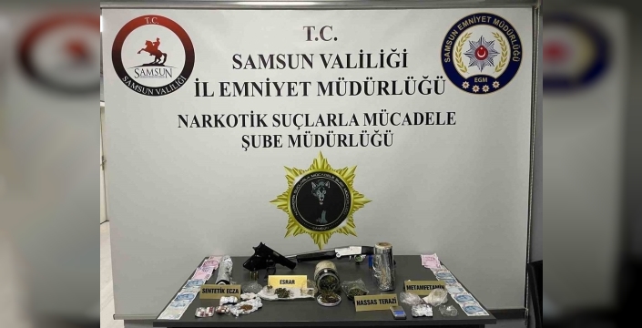 Samsunda düzenlenen uyuşturucu operasyonunda 3 kişi yakalanırken, çok sayıda uyuşturucu madde ve silah ele geçirildi.