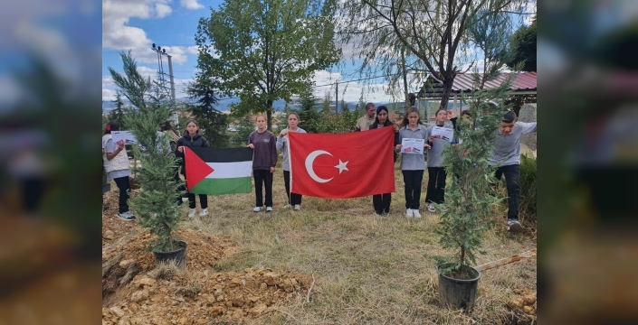 Akharım Ortaokulu yönetimi, öğretmenleri ve 160 öğrencisi, okul bahçesinin bir bölümünü çitlerle ayırarak ağaçlandırma çalışması yaptı. Barış bahçesine 20 çam ağacı dikilirken, öğrenciler etkinlik boyunca yanlarında getirdikleri Türk ve Filistin bayraklarını taşıdılar.