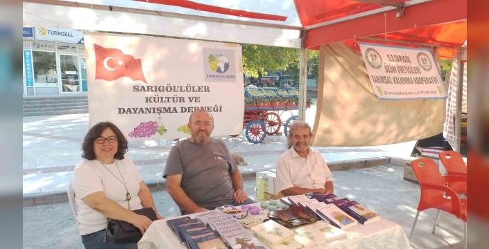 Sarıgöl 17. Sultaniye Üzüm Festivali'nde İzmir Sarıgöllüler Kültür ve Dayanışma Derneği, yazar Vicdan Efe ve Salih Yapıcı'nın kitaplarını tanıttı. Dernek Başkanı Halil Yıldırım, derneğin Sarıgöllülere destek olmayı amaçladığını belirtti.Sarıgöl 17. Sultaniye Üzüm Festivali'nde İzmir Sarıgöllüler Kültür ve Dayanışma Derneği'nin standı yoğun ilgi gördü