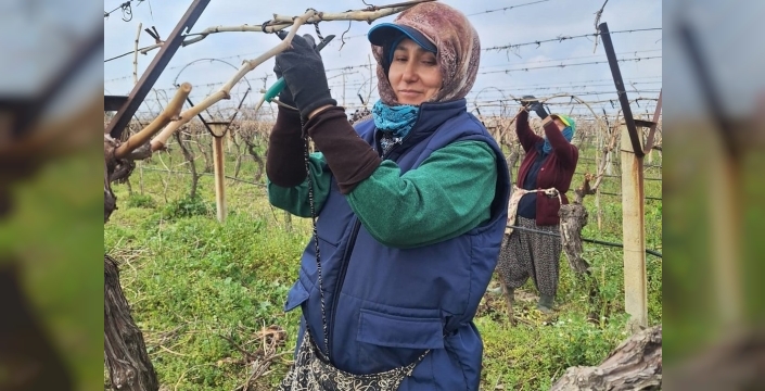Manisa'nın Sarıgöl ilçesinde üzüm üreticileri, bağlarda budama ve bağlama çalışmalarını durmaksızın sürdürüyor.