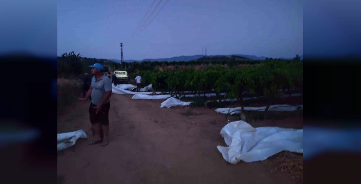 Manisa Sarıgöl Ovası'nda üzüm üreticileri, doğa olaylarına karşı bağlarını korumak için örtüleme çalışmalarını sürdürüyor ve dolandırıcılığa karşı uyarıda bulunuyor.Sarıgöl Ovası'nda üzüm bağları koruma altına alınıyor