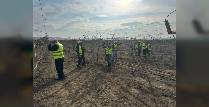 Manisa'nın Sarıgöl ilçesinden ziraat mühendisi Mustafa Çinkılıç, Azerbaycan'ın Ağstafa rayonunda faaliyet gösteren Kur Fruit Company firmasına ait bin 600 dönümlük üzüm bağlarında verimli budama teknikleri konusunda eğitim verdi.