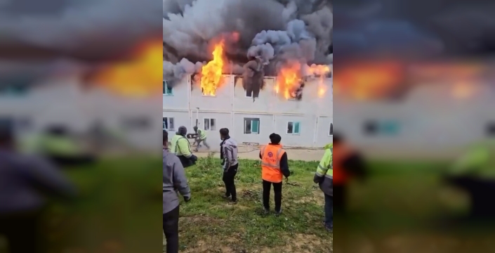 Alandüzü Mahallesi'ndeki şehir hastanesi şantiyesinde, işçilerin kaldığı konteynerlerde henüz bilinmeyen bir sebeple başlayan yangın, kısa sürede tüm bölgeyi sardı. Yatakhane olarak kullanılan konteynerlerin alevler içinde kaldığı anlar, adeta bir kabusu gözler önüne serdi.