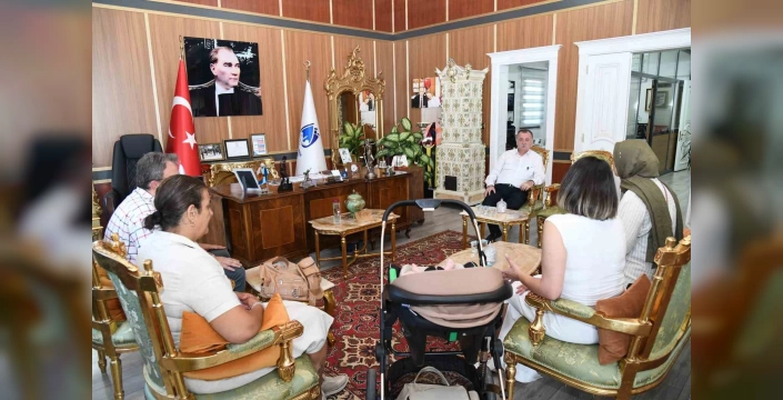 4 aylık oğlu Çağan Ata Taran'ın SMA Tip-1 hastalığıyla mücadele ettiğini belirten anne Aleyna Taran, belediye başkanını ziyaret ederek, hastalıkla mücadele süreçleri ve valilik onaylı kampanya hakkında bilgi verdi. Taran, destek isteğinde bulundu.