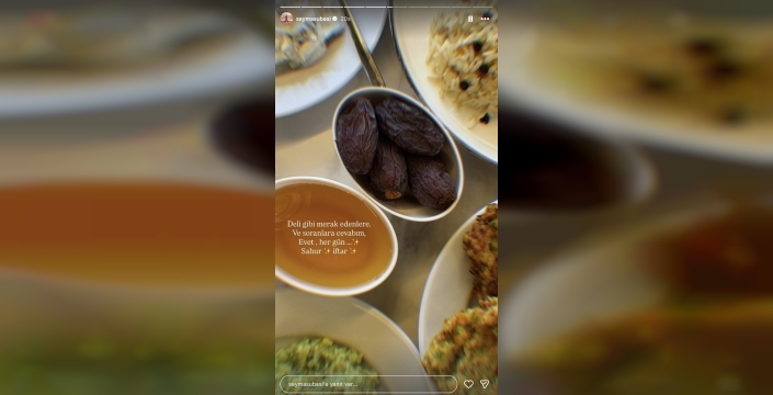 Şeyma Subaşı, takipçilerinin merak ettiği oruç tutup tutmadığı sorusuna 'Evet, her gün… Sahur ve iftar' yanıtını vererek Ramazan boyunca oruç tuttuğunu açıkladı.