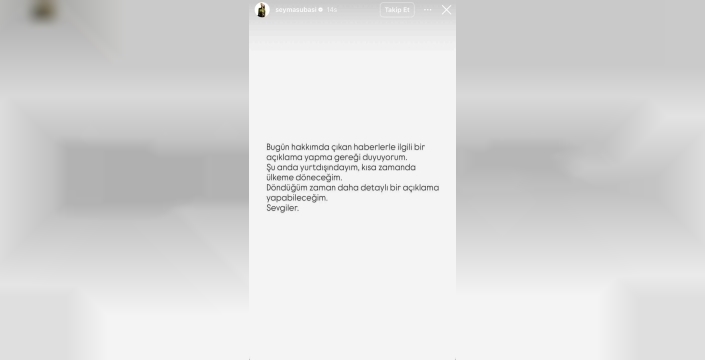 Subaşı, Instagram hesabından yaptığı paylaşımda, "Hakkımda çıkan haberlerle ilgili bir açıklama yapma gereği duyuyorum. Şu anda yurt dışındayım, kısa zamanda ülkeme döneceğim. Döndüğüm zaman daha detaylı bir açıklama yapabileceğim. Sevgiler" ifadelerini kullandı. Bu açıklama, soruşturma sürecinde medyada yer alan iddialara yanıt niteliği taşıyor.