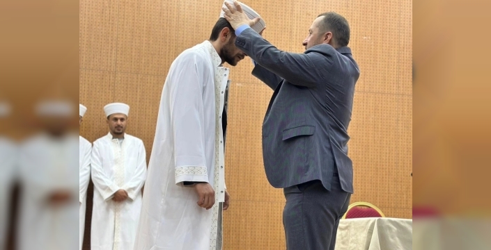 Kütahya'nın Simav İlçe Müftülüğü, köy ve beldelerde görev yapacak olan 9 din görevlisi için özel bir cübbe ve sarık giyme programı düzenledi.
