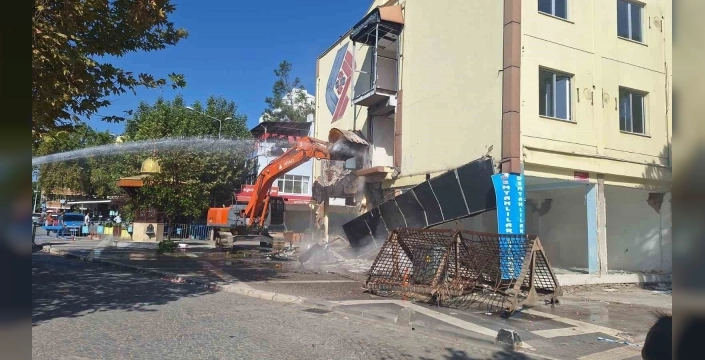 Belediye Oteli ve altındaki dükkanların yıkımı, uzman ekipler tarafından kontrollü bir şekilde gerçekleştiriliyor. Yıkım çalışmalarının çevredeki binalara ve vatandaşlara herhangi bir zarar vermeden tamamlanması hedefleniyor.