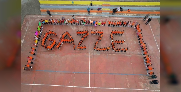 Okul bahçesinde bir araya gelen yüzlerce öğrenci, öğretmenlerinin öncülüğünde Türk ve Filistin bayraklarını ellerinde taşıyarak "Gazze" yazılı dev bir kareografi oluşturdu. Bu anlamlı anlar, dron ile havadan görüntülenerek ölümsüzleştirildi. Etkinlik süresince öğrenciler, Gazze'deki çocukların karşı karşıya kaldığı zorluklara vurgu yaparak barış ve dayanışma mesajları iletti.